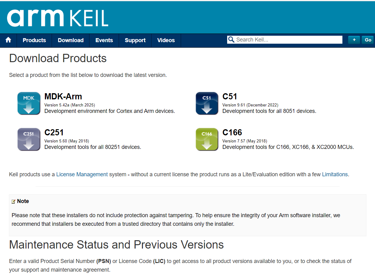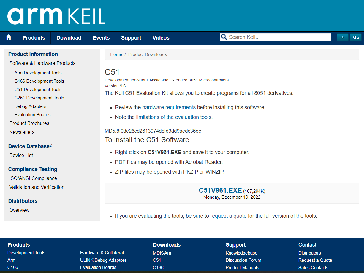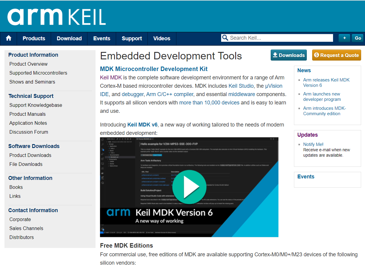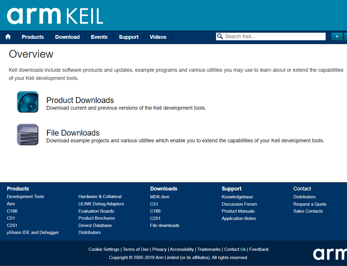 有兴趣的开发者可以通过官网了解Keil开发工具的更多信息。选择导航菜单[Download]进入下载页面。