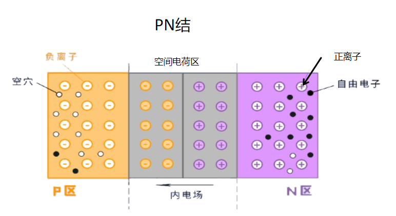 随着电子与空穴的结合,在接触面附近会形成一个特殊区域:N 区一侧因失去电子而留下带正电的离子,P 区一侧因失去空穴而留下带负电的离子,这就形成了空间电荷区(又称耗尽层)。