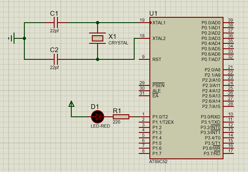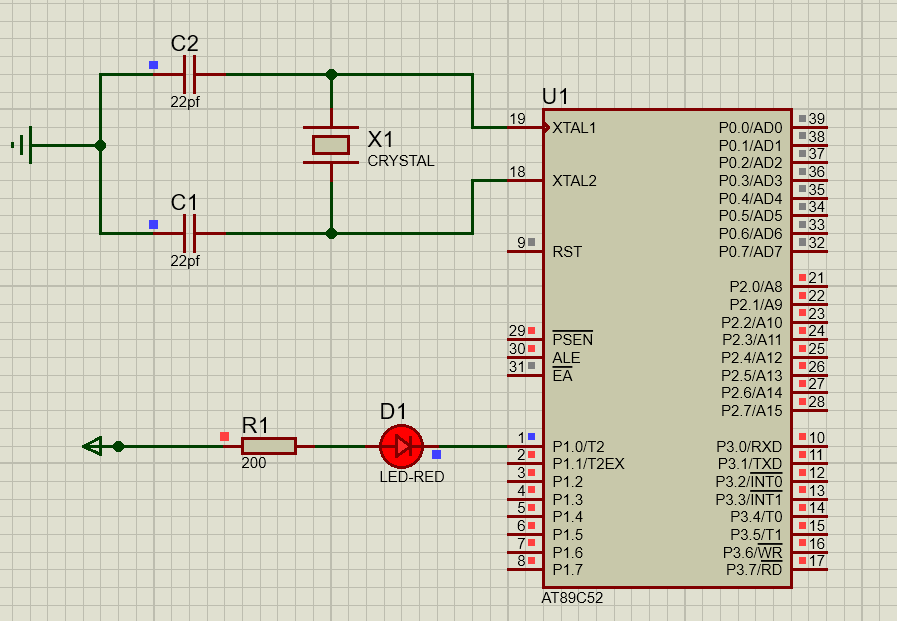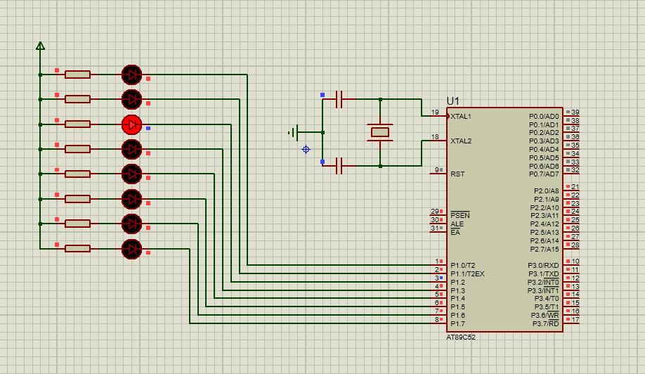 ③ 能独立完成Proteus电路搭建(含电源、晶振电路、LED电路、电流和电压测量);