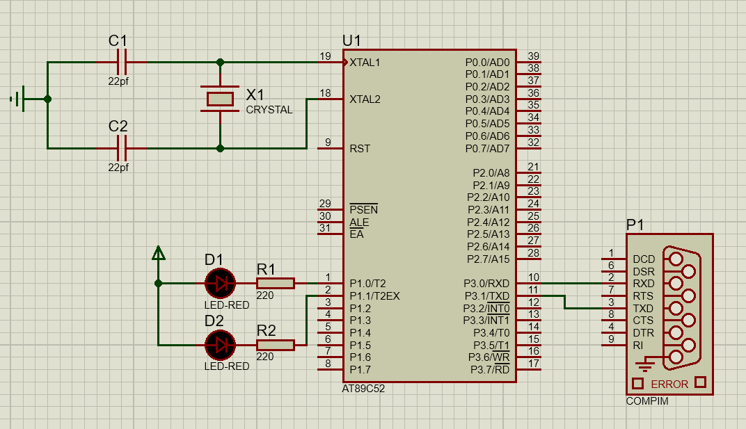 1、初始化串口(波特率9600bps,晶振11.0592MHz),开启总中断与串口中断;初始状态熄灭LED1(P1.0)、LED2(P1.1),并向串口发送欢迎消息,提示发送1、2、3的功能。