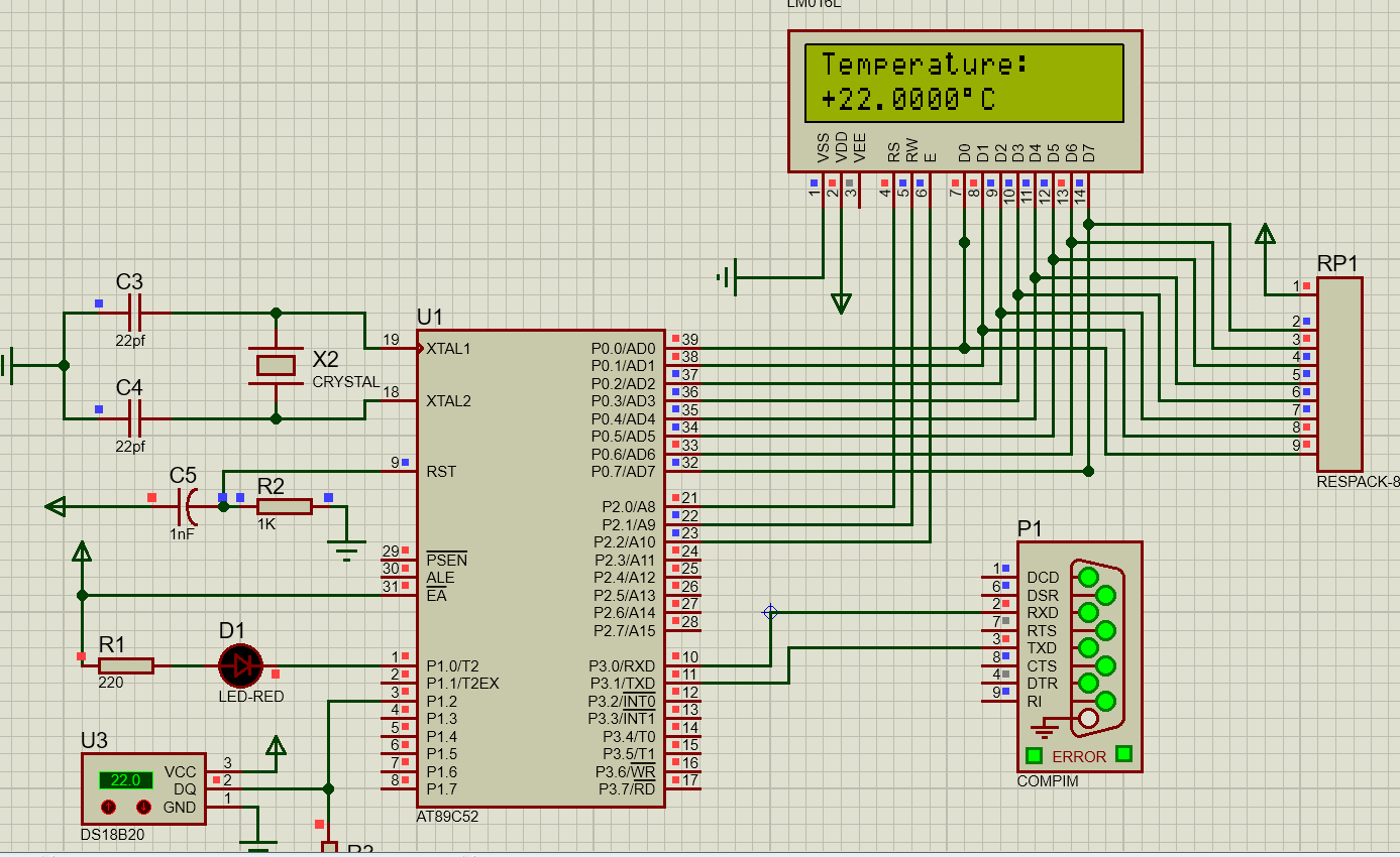 1、实时温度监测与显示:通过DS18B20温度传感器采集环境温度,LCD1602显示器实时显示温度数值。
