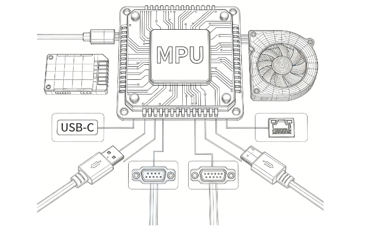 MPU的外设管理强调”通用计算、灵活扩展”,通过通用总线(如PCIe)连接丰富的外设接口,支持构建复杂的计算机系统。